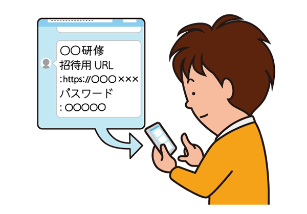 セミナーなどの主催者から発行された招待用URLやID、パスワードなどをSNSに公開したり、参加する権利のない人と共有したりしてはいけません。部外者の入室を許すと、嫌がらせを受けたり、通信内容を盗み見されたりしてしまう可能性もあります。セミナーや研修、会議などで使われた資料の内容、参加者の画像や映像を勝手に記録したり、ネットに投稿したりする行為もトラブルの元です。ネットを介したコミュニケーションであっても、相手に配慮し、モラルがある行動を心がけましょう。