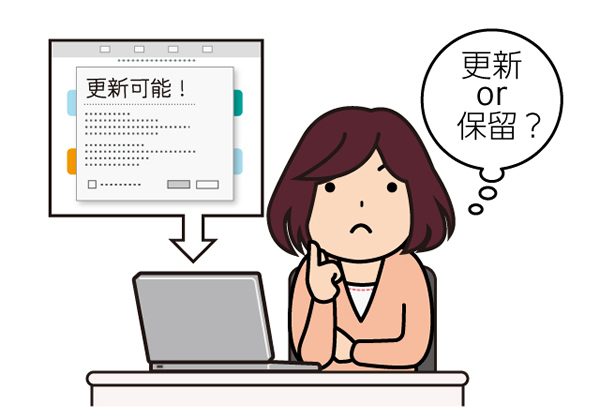 Q6.オンライン会議などに用いるビデオ会議アプリの更新通知を受け取った。そのままでも実務に支障はないが、アップデートをしてから利用するのが望ましい。